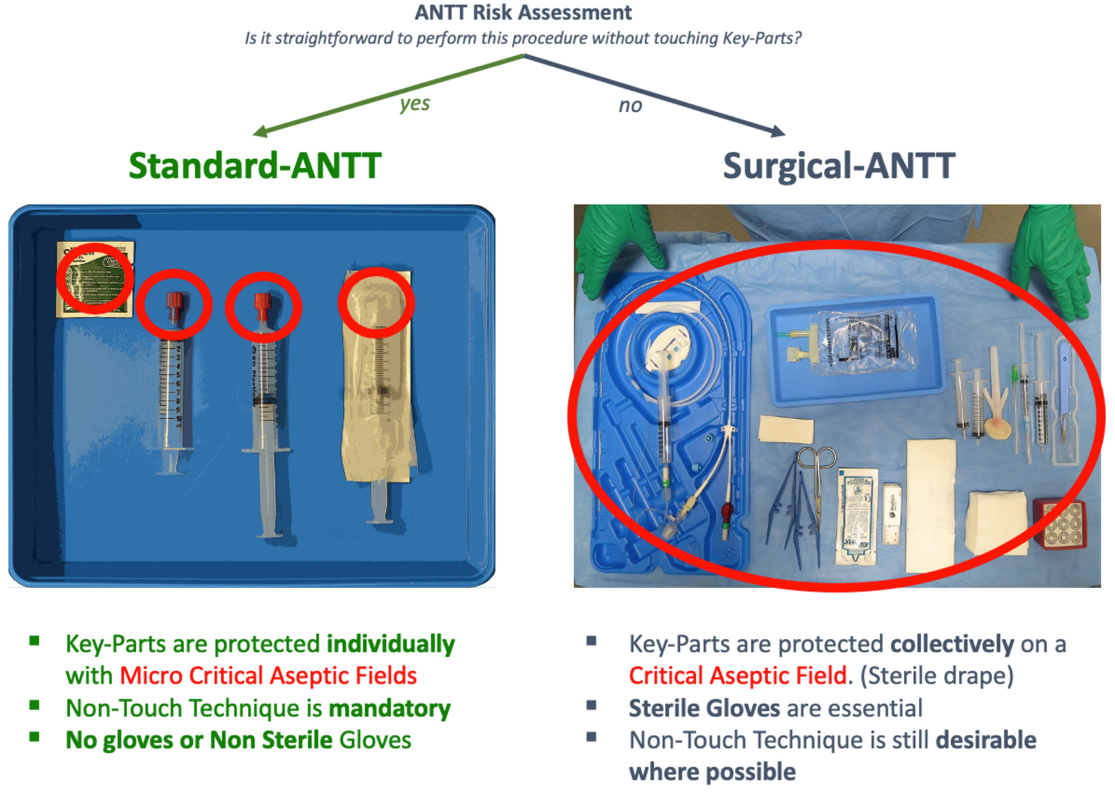 It’s important to note that ANTT is designed and used for all invasive procedures - from major surgery to simple maintenance of indwelling medical devices. To be efficient as well as safe, the ANTT Practice Framework incorporates two approaches to maintaining asepsis and includes a simple risk assessment for determining the most appropriate approach for any given procedure.